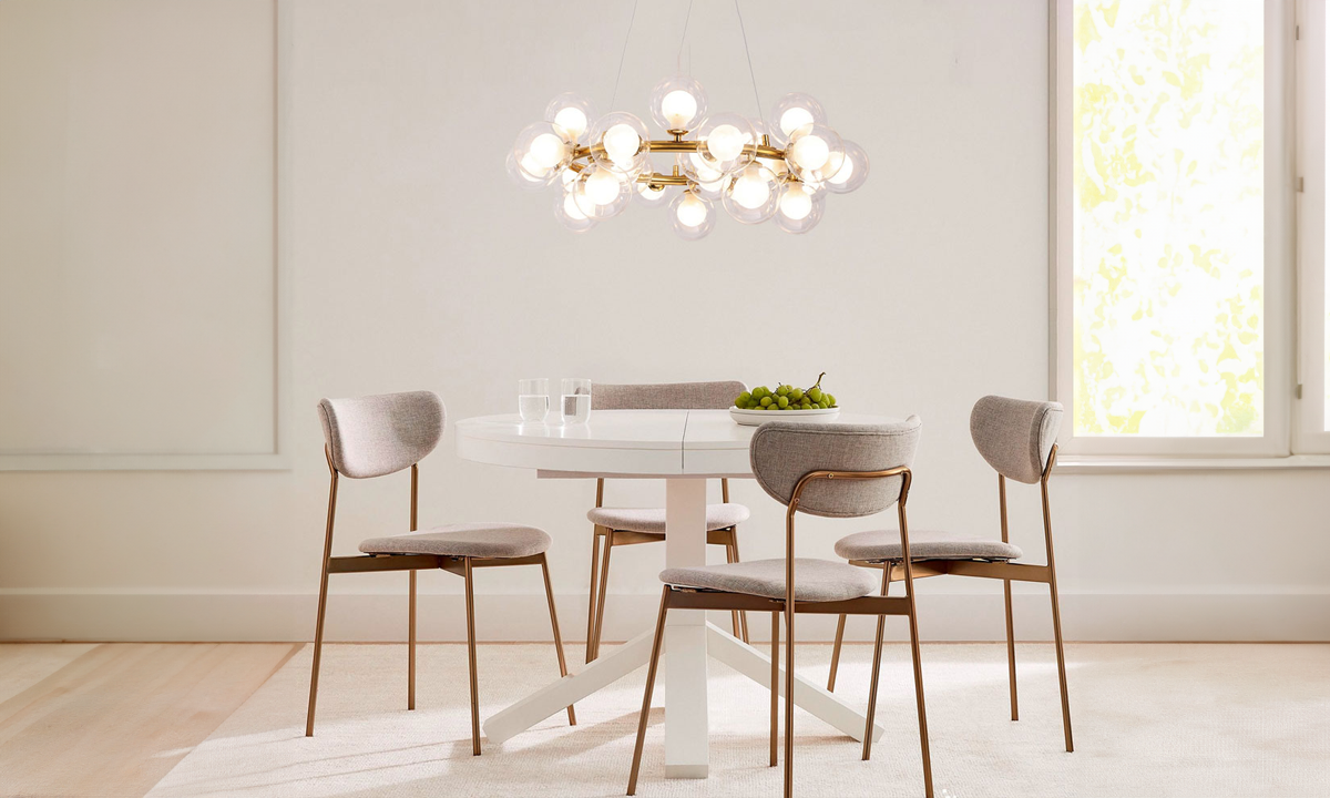 Con 8 esferas de cristal transparente, fusiona lo clásico con lo moderno para crear una iluminación cálida y sofisticada en cualquier ambiente.
